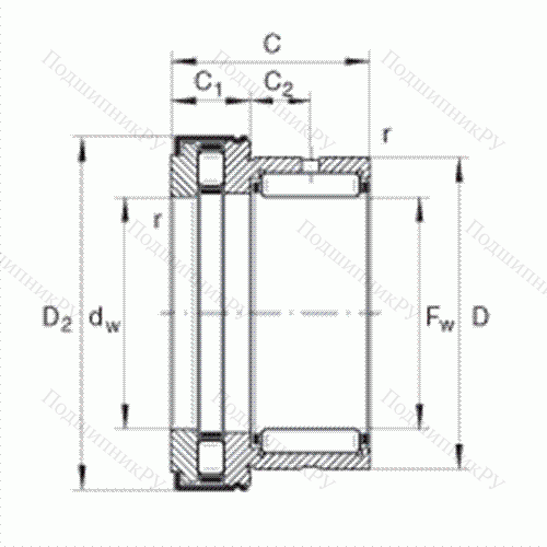 Подшипник комбинированный с короткими цилиндрическими и игольчатыми роликами NKXR 35-Z