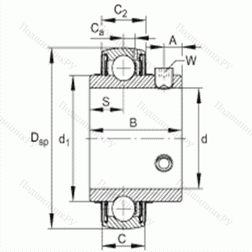 сферическое наружное кольцо, фиксация резьбовыми штифтами, двусторонние RSR-уплотнения