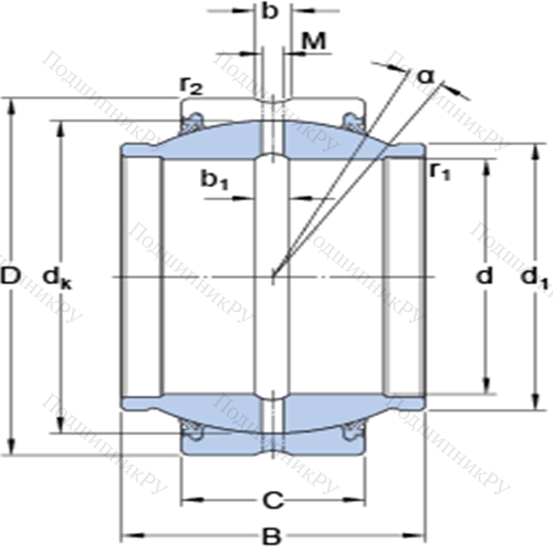 Радиальные сферические подшипники скольжения с контактными поверхностями сталь/сталь, требующие техобслуживания GEM 60 ES-2RS конструкция которого представлена внешним кольцом, внутри вращается внутренняя обойма. Существуют прямые, шарнирные (самовыравнивающиеся), угловые, гидравлические, двойные шарикоподшипниковые и роликоподшипниковые варианты исполнения. Отдельные разновидности изделий (с парой трения «сталь – сталь») нуждаются в обслуживании и имеют каналы для подачи смазки, в то время как другие не нуждаются в ТО. В первом случает система включает в себя пару стальных шин, обработанную предварительно фосфатами и дисульфитом молибдена. Необслуживаемые модели покрываются политетрафторэтиленом, армируются медью и дополнительно усиливаются хромом.