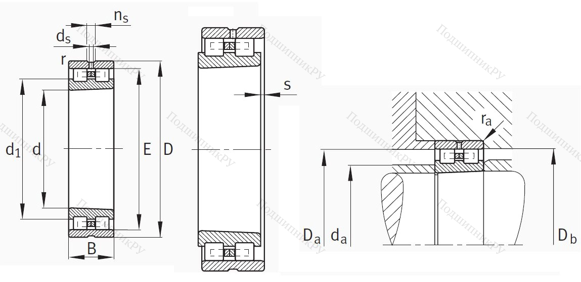 Конструктивно состоит из внешней плоской обоймы, без бортов, внутре6ннего кольца с двумя бортами, сепаратора и пары рядов цилиндрических роликов.