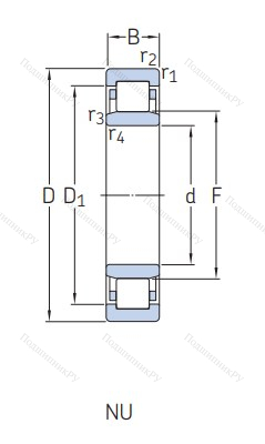 Роликовый цилиндрический подшипник NU 2309 ECP/C3, это разновидность однорядного роликоподшипника в метрическом исполнении.