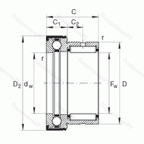 Шарикоподшипник упорный комбинированный с игольчатыми роликами NKX 35-Z