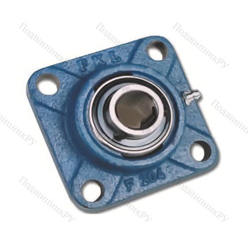 Фланцевого корпуса типа F (по классификации FKL), квадратного сечения с 4 отверстиями под болты. Устанавливается на вертикальные опорные поверхности. Иными брендами маркируется иначе. Пример: SKF – FY(J), FAG – FG56, INA – CF/CJ, NSK и NTN – F.