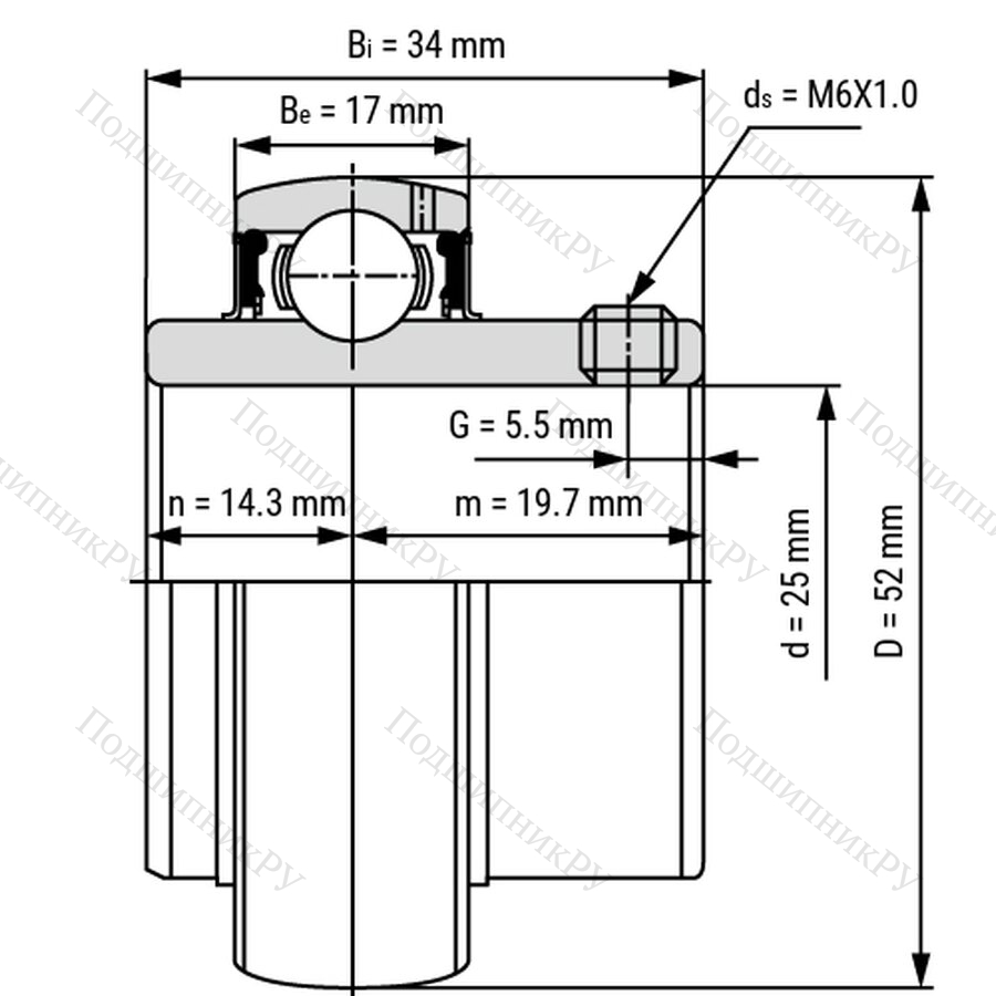 Подшипник из нержавеющей стали SS-UC205 может быть легко прикреплен к валу с помощью резьбовых штифтов или вставлена в корпус. Он подходит для радиальных нагрузок и устойчив к коррозии. Основные размеры согласно DIN 626-1.
