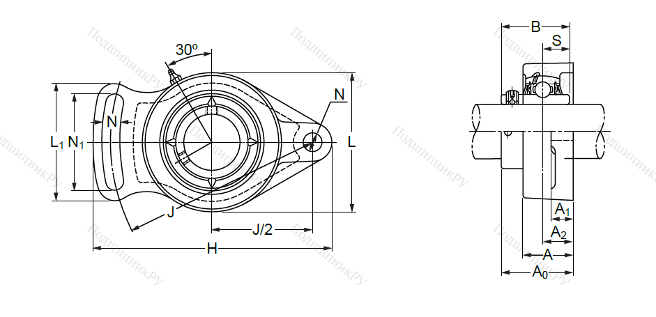 Наружная поверхность конструкции имеет сферическую форму, внутри которой удерживается однорядный радиальный шариковый подшипник. Внутреннее кольцо – расширенное, с дополнительными уплотнениями и винтом для установки.