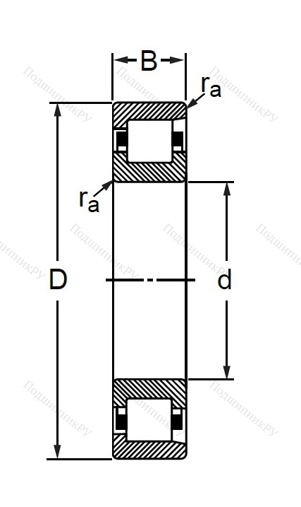 Конструктивная особенность данного изделия заключается в наличии коротких цилиндрической формы роликов и двух стопорных шайб. Внутреннее кольцо оснащено двумя бортами, в то время как наружное является безбортовым.